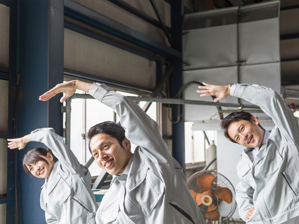 同じ現場に入る会社の方々と一緒に朝礼をします。